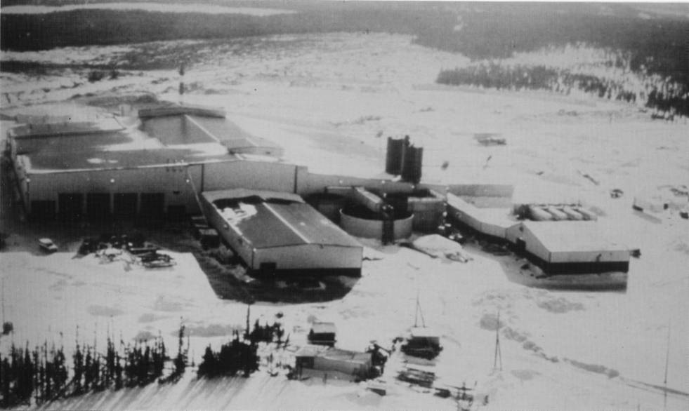 $30 million, grassroots mine and uranium ore processing complex located in northeastern Saskatchewan. Open-pit mining, stockpiling and mill charging accomplished using front-end loaders, semi-autogenous grinding, thickening and slurry storage, agitated leaching in wood stave tanks, five-stage counter-current decantation with clarification and sand filtation, solvent extraction, stripping, regeneration, precipitation, thickening, centrifuging, drying, product (U3O8) packing into steel drums and shipment. Rabbit Lake lies along the 58th parallel where winter temperatures drop to 50° below zero, limiting the construction season to six months per year. Surface access to the site was possible only during the six-week period in late winter when muskeg and lakes were sufficiently frozen to support vehicular traffic. Enough equipment, materials and supplies were brought in to sustain the following year’s construction effort. The entire uranium processing complex and support facilities were housed under one roof.